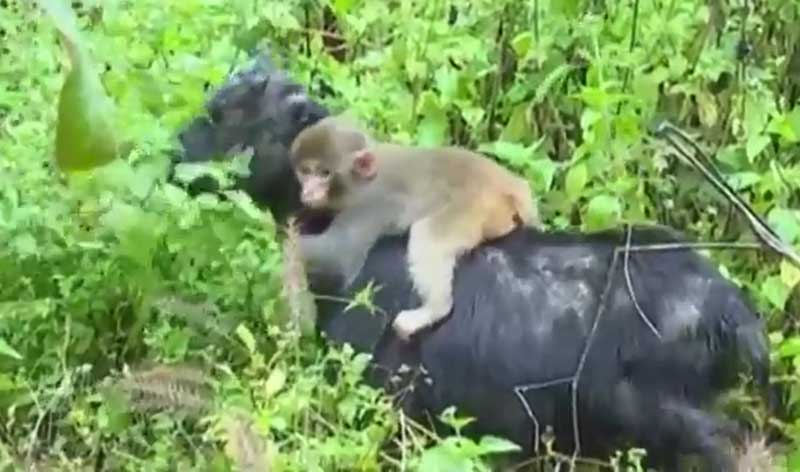 Zhong added that the animals are inseparable as if the monkey has decided the goat is its new mother. The county wildlife protection station has taken measures to protect the monkey and plans to transfer it to nearby Yichun Zoo.
